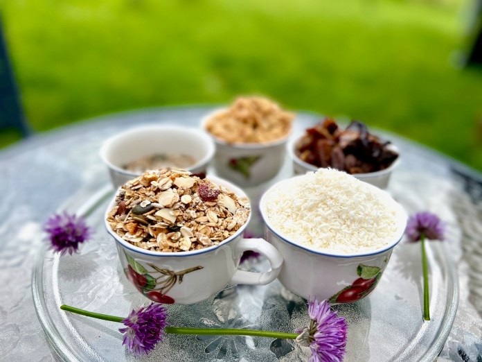 […] Kínóa/ananas, avókadóterta, steiktir sveppir og orkustykki […]