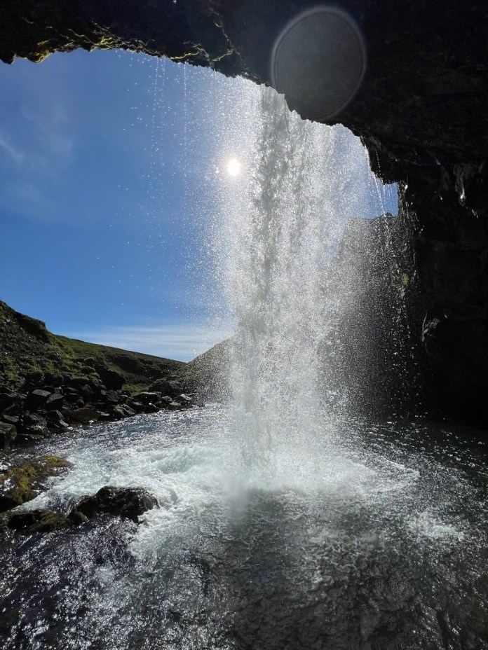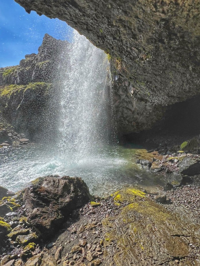 On peut passer derrière la cascade, mais il faut être prudent. À l’extérieur de Gilsárfoss se trouve un petit vallon appelé Smyrlagil. En amont de la cascade, on trouve Hellismýrar et, au-dessus, Kappeyrarmúli. Les prairies situées après la cascade s’appellent Mýrar, et plus haut se dresse la montagne Örnólfsfjall.